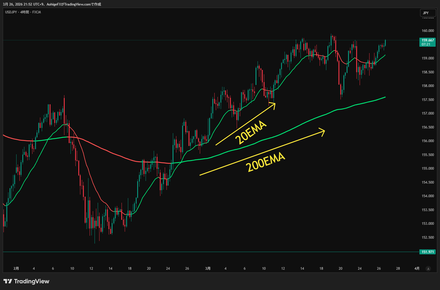 - レンジ相場(EMAが横ばい)なのにトレンドと勘違いする
